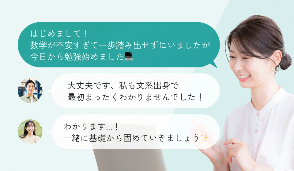 - E資格受験仲間と一緒に頑張れるコミュニティ